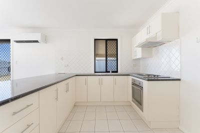 Comfort is assured year-round with reverse-cycle split system air conditioning, while electric roller shutters to the front of the home provide added security, insulation, and privacy.